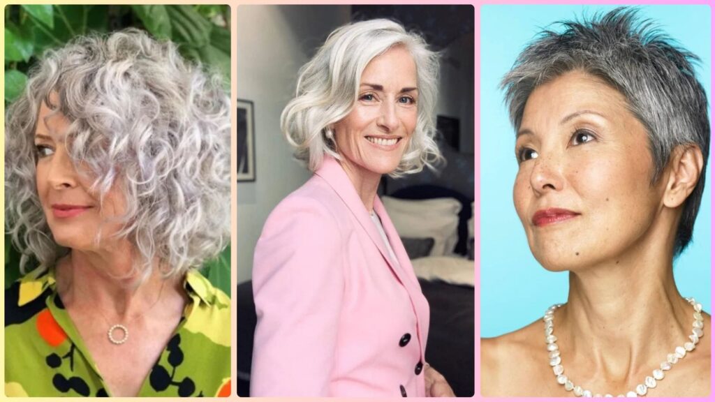 A perfect place to begin is with a voluminous silver blowout, which adds lift and structure without making the hair feel heavy. The layers are styled back softly, creating a smooth silhouette that frames the face beautifully. This works especially well for women embracing natural grey tones. However, if you prefer something less styled and more effortless, a layered bob might feel easier to maintain.