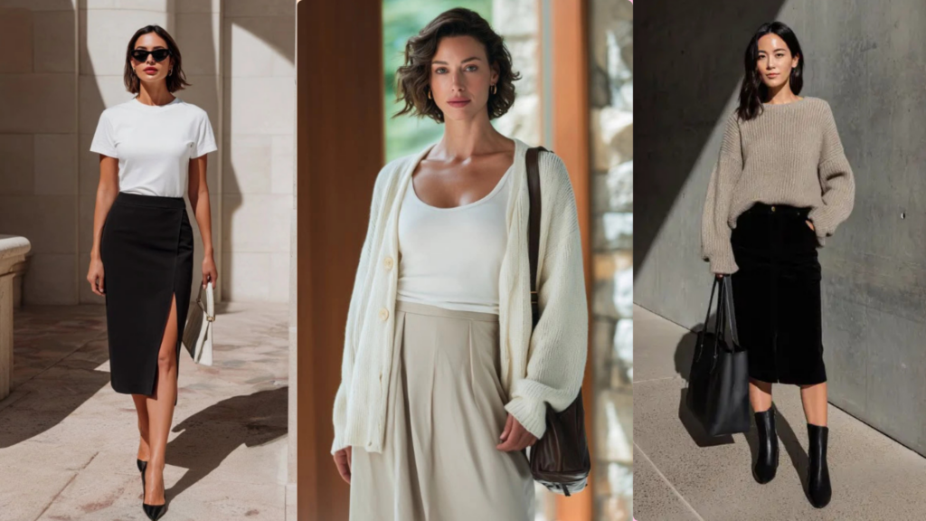 Before looking at the specific outfit ideas, understanding the core principles behind minimalist skirt styling will help you apply these ideas beyond this list — to every skirt in your wardrobe, every morning you get dressed.